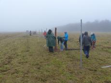 Ja, die fleißigen Helfer vom Bergwaldprojekt e.V. waren ab 24.10. 2016 wieder für eine Woche in der Region und unterstützen mit ihrem Einsatz die Umsetzung von Maßnahmen im Naturschutzgroßprojekt. Sie lernten beim Einsatz in Fürstenau aber völlig andere Herbstimpressionen kennen, eben die echten „Fürstenauer“. Bei waberndem Nebel, erstem Raureif, kühlen Kammwinden und Temperaturen um den Gefrierpunkt bauten sie für eine geplante Heckenpflanzung einen 300 m langen Zaun. Motiviert und engagiert ging man mit lachenden Gesichtern an die Arbeit. Unglaublich, dass der von Teamchef Andreas Friesecke geplante Mittwoch als Fertigstellungstermin gehalten wurde. Alles war wieder bestens organisiert.