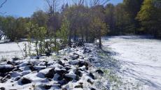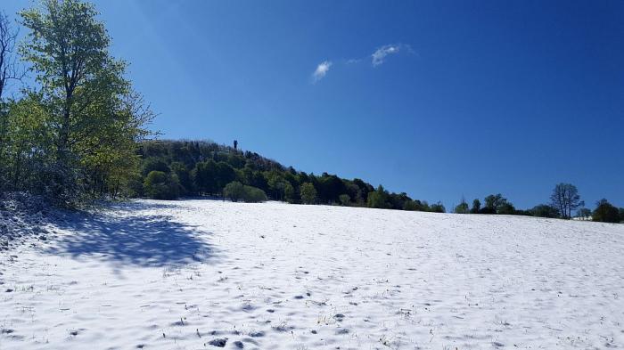 Ja, und wer da denkt, so leuchtendbunt kann es weitergehen, der hat die Rechnung ohne Pankratius gemacht. Der kam über Nacht und bedeckte die bunte Pracht mit einem weißen Mantel der Stille. Aus dem Nebel von gestern wurde der Schnee von heute, dem 12. Mai 2020.