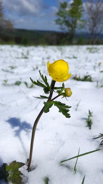 und ersten Majalis und natürlich – Trollblumen, weithin sichtbar sattgelb leuchtend, gezeichnet vom kalten Nebel des Mamertus.