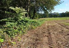 Auf ca. 1.600 m² war die Teilfläche (TF1) mit Japanischen Staudenknöterich bedeckt. Voraussetzung für die zukünftige Sicherung und Einbindung in eine landwirtschaftliche Nutzung war die komplette Entnahme des Bestandes bis zu den Wurzeln. Dazu musste ca. 0,4 m Oberboden abgetragen und entsorgt werden.