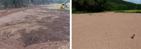 Nach dem Erdabtrag wurde die Fläche mit 3.000 m³ nährstoffarmen Boden (Granitporphyr, Vorsieb 0/32) aus dem Schotterwerk Bärenstein abgedeckt.