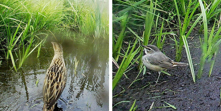 Trotzdem ist es schön, zu sehen, wie sich insbesondere verschiedene Wachtelkönige (Crex crex) um jeden Tropfen Wasser bemühen und wie dieser kleine Lebensraum auch vom hier erstmals nachgewiesenen Blaukehlchen (Luscinia svecica) angenommen wird.