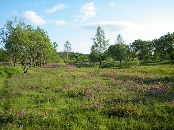 Perücken-Flockenblume, Weicher Pippau, Stattliches Knabenkraut, Niedrige Schwarzwurzel, Trollblume, Feuerlilie, Buschnelke, Karpatenenzian, Kugelknabenkraut | Wiesenpieper, Kreuzotter, Großer Perlmutterfalter, Violetter Waldbläuling, Dukatenfalter, Wachtelweizen-Scheckenfalter, Plumpschrecke, Zikade Dicranotropis divergens |
