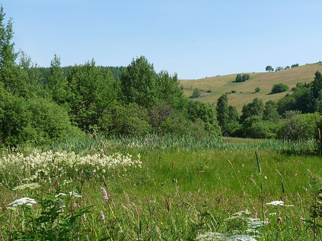 Die Bergwiesen kommen großflächig in unterschiedlichen Ausprägungen vor, sind aber artenärmer als am Geisingberg.